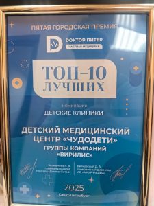 С гордостью и радостью делимся потрясающей новостью: медцентр «ЧудоДети» группы компаний «Вирилис» вошел в десятку лучших частных клиник Санкт-Петербурга по результатам народного голосования и стала лауреатом премии «Доктор Питер – частная медицина»!