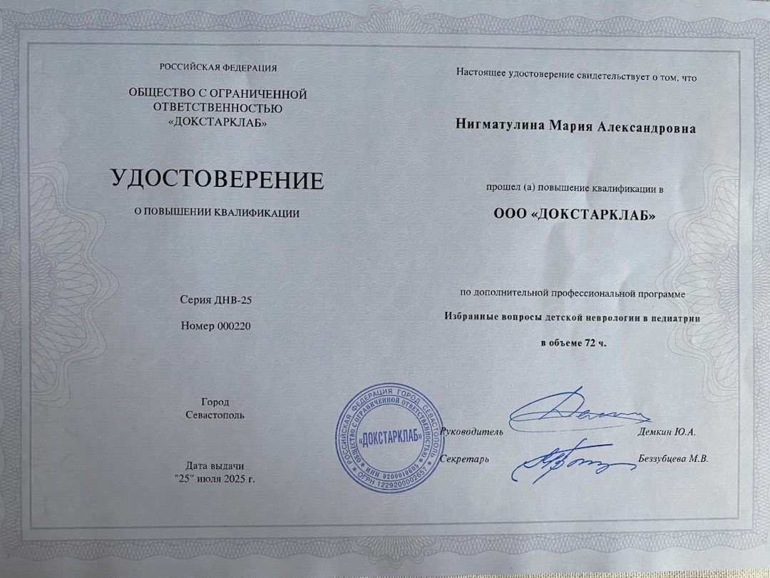 - Неврология. Периодическая аккредитация. Действует с 28.10.2025 по 28.10.2030